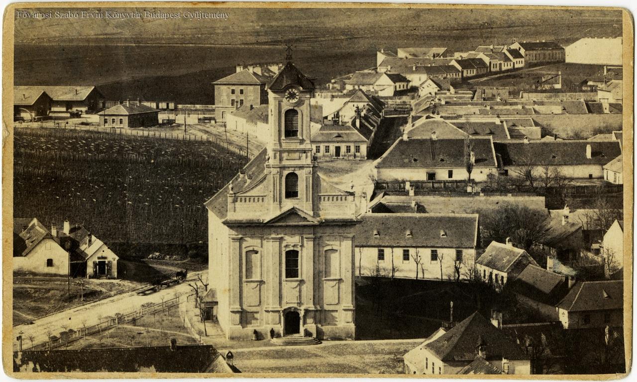 templom, katolikus egyház, dombság, szőlőművelés, falusi ház, 1865