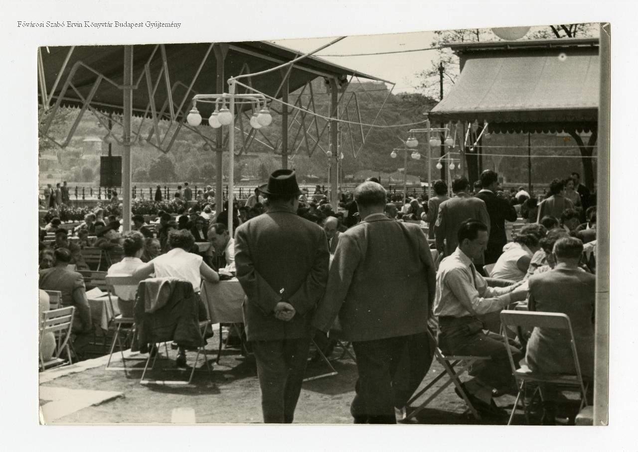 étterem, néptömeg, terasz, jelenetkép, 1950-es évek