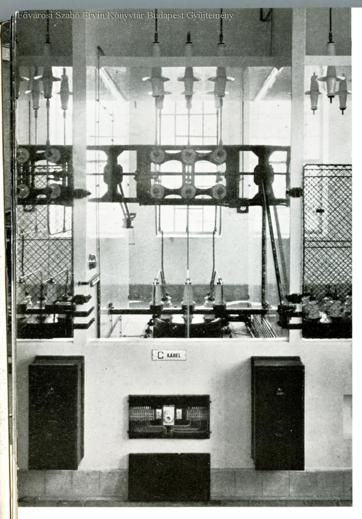 transzformátorállomás, áramszolgáltatás, mechanikai kapcsolóberendezés, épületkép, belső felvétel, 1934