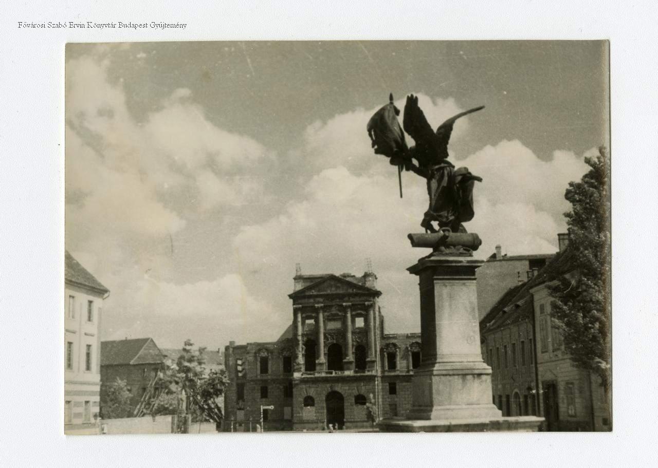 [Dísz tér a romos honvédelmi minisztériumi és főparancsnoksági épülettel]