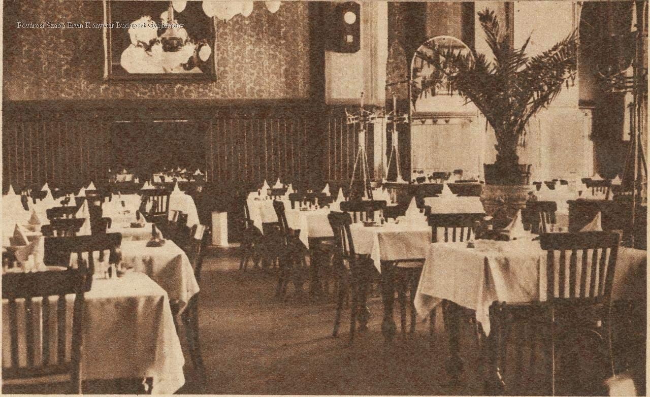Elegáns enteriőrök Bandl Ferenc éttermében (József körút 46.) az előkelő közönség vacsorázóhelye