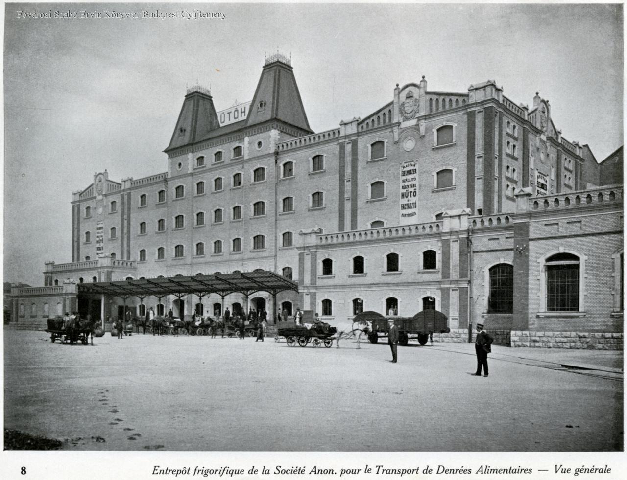 hűtőház, hűtőipar, kereskedelmi létesítmény, épületkép, külső felvétel, homlokzat, lovas kocsi, 1908