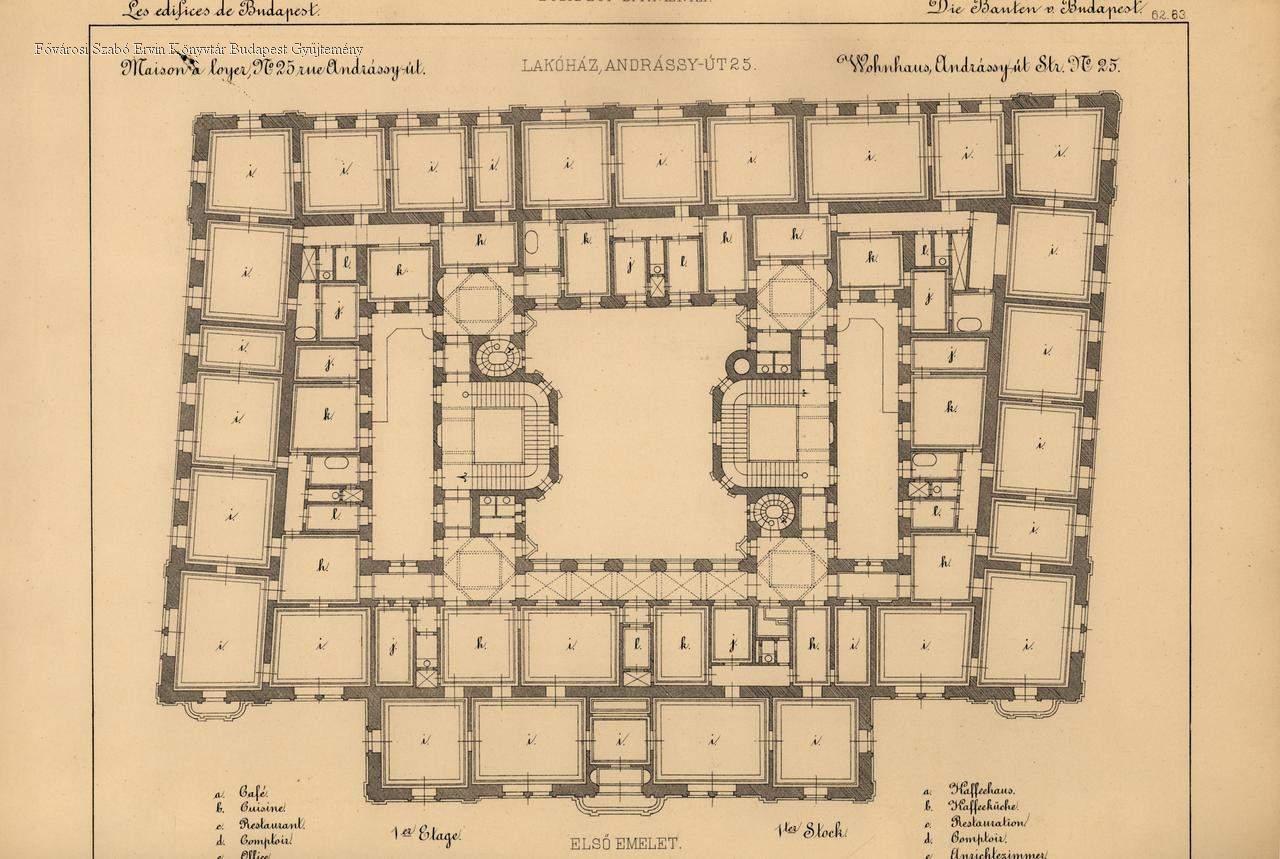 Lakóház, Andrássy-út 25. Lechner Ö. és Pártos Gy. építészek : első emelet Maison à loyer, no. 25. rue Andrássy-út. : M. Mrs. E. Lechner & J. Pártos Architectes = Wohnhaus, Andrássy-út Str. No 25. : E. Lechner & J. Pártos Architecten