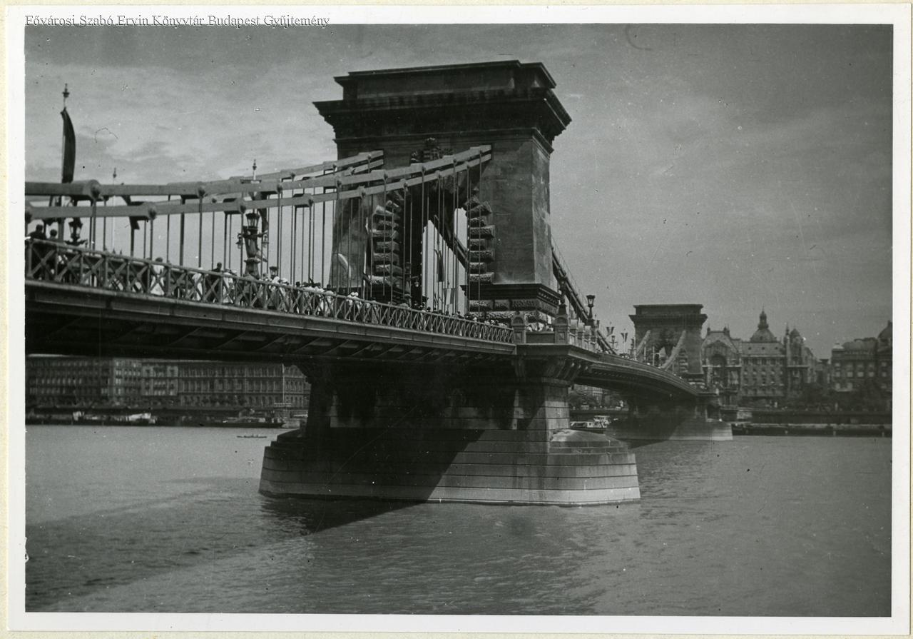közúti híd, gyalogos közlekedés, ünnep, zászló, 1936 előtt