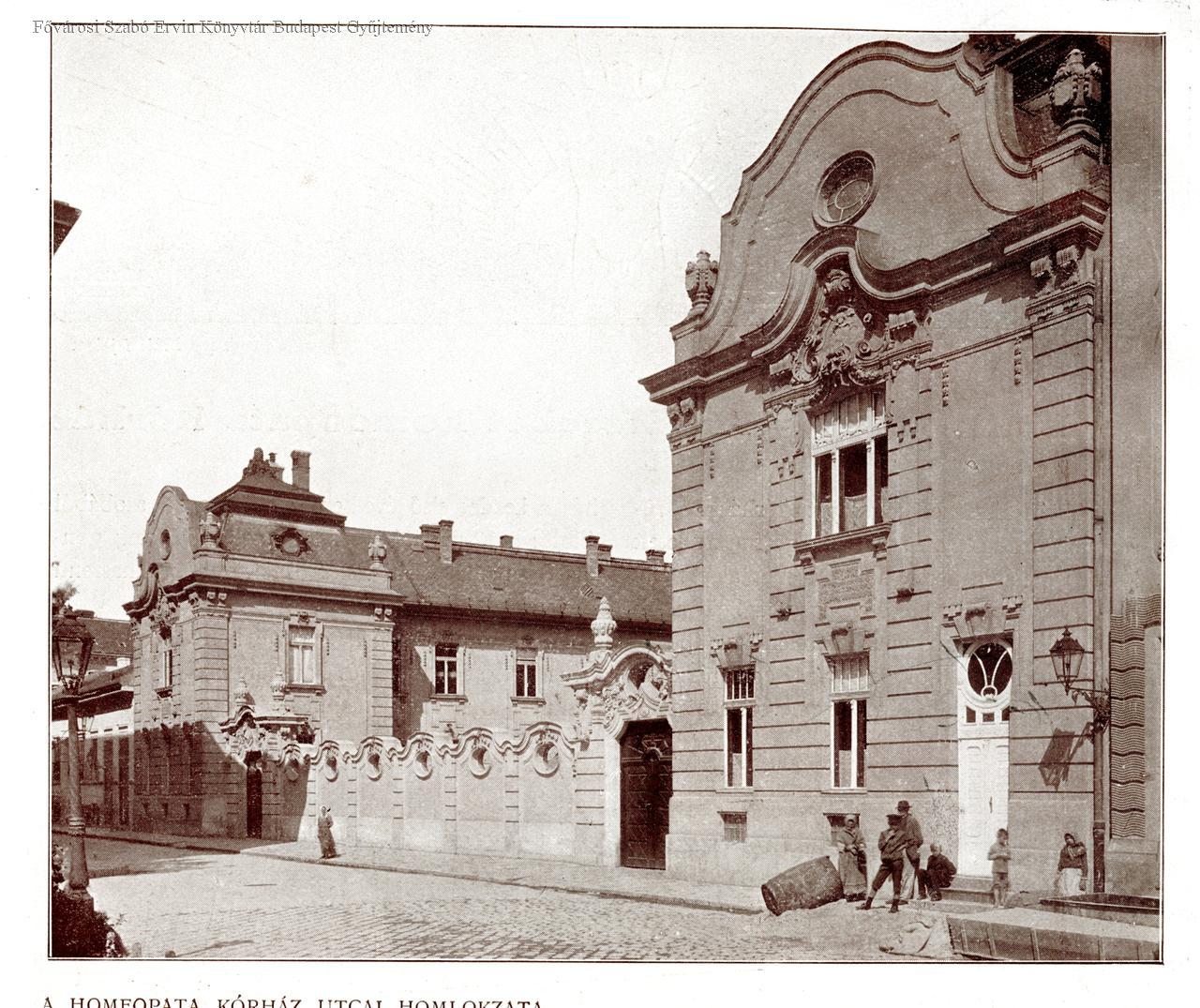 [Az Erzsébet Homeopata Kórház utcai homlokzata, annak részlete és udvara]