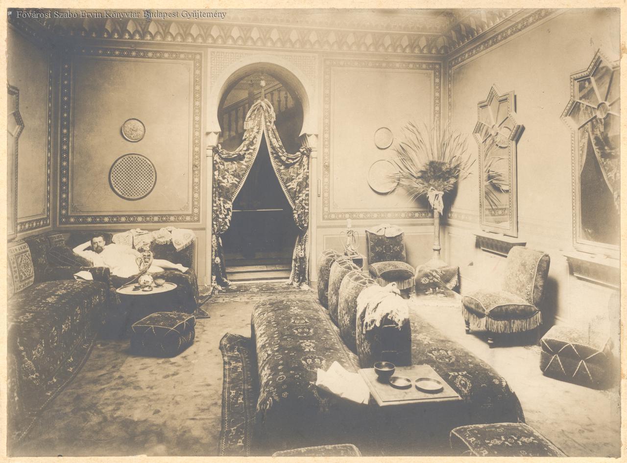 [Rudas fürdő pihenőszobája, szalonja férfi vendéggel]