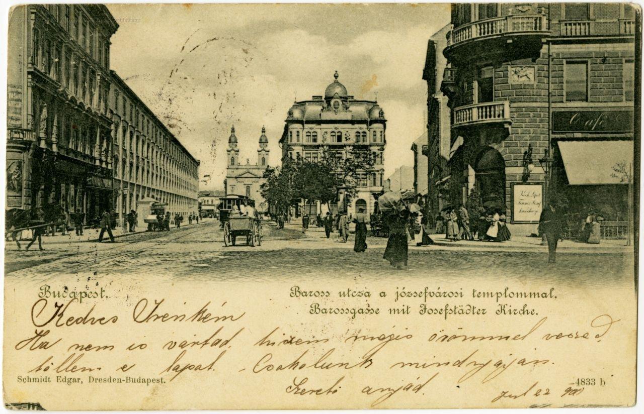 Budapest Baross utca a józsefvárosi templommal : Barossgasse mit Josefstädter Kirche : levelező-lap