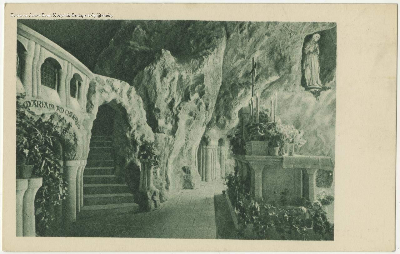 képes levelezőlap, templom, pálosok, katolikus egyház, barlang, oltár, lépcső, belső felvétel, 1930-as évek