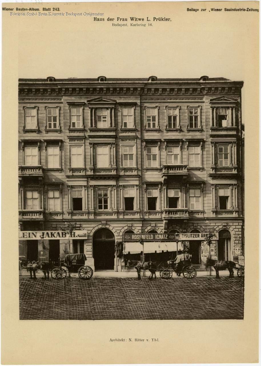 Haus der Frau Witve L. Prükler Budapest, Karlsring 16. : Architekt N. Ritter v. Ybl