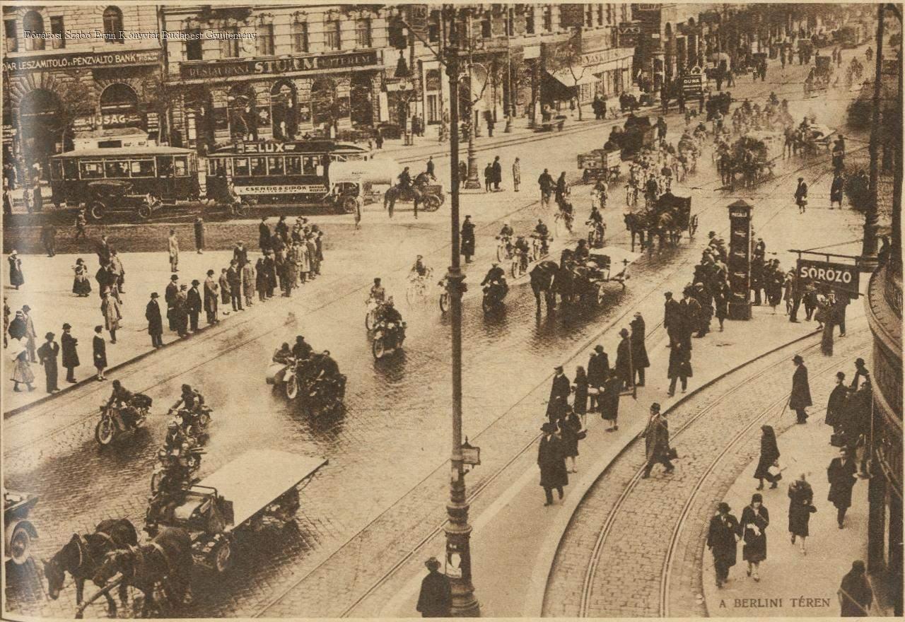 sportfotó, motorkerékpársport, motorkerékpár, útkereszteződés, lovas kocsi, villamos kocsi, 1928