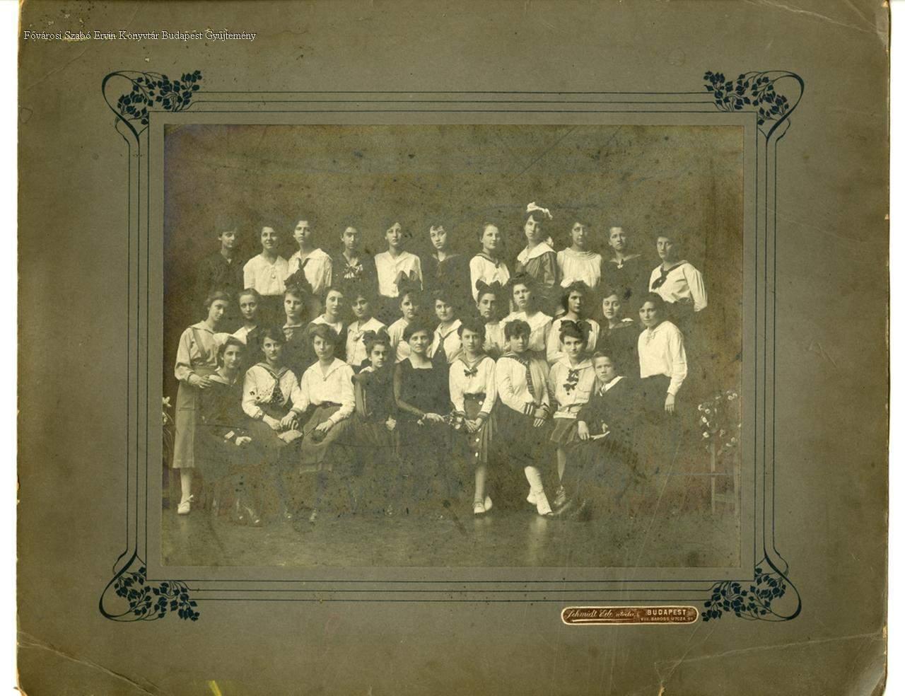 gimnázium, gimnazista, lány, nőképzés, pedagógus, gimnáziumi tanár, belső felvétel, csoportkép, iskolai tabló, osztálykép, 1910-es évek, 1920-as évek