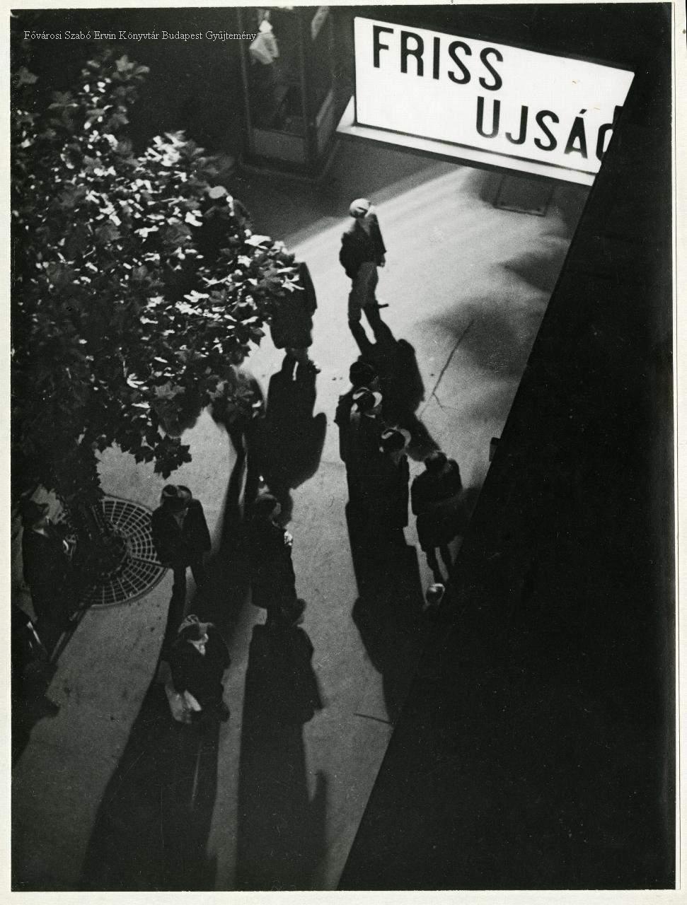 A Friss Ujság Nagymező utcai kiadóhivatalánál.