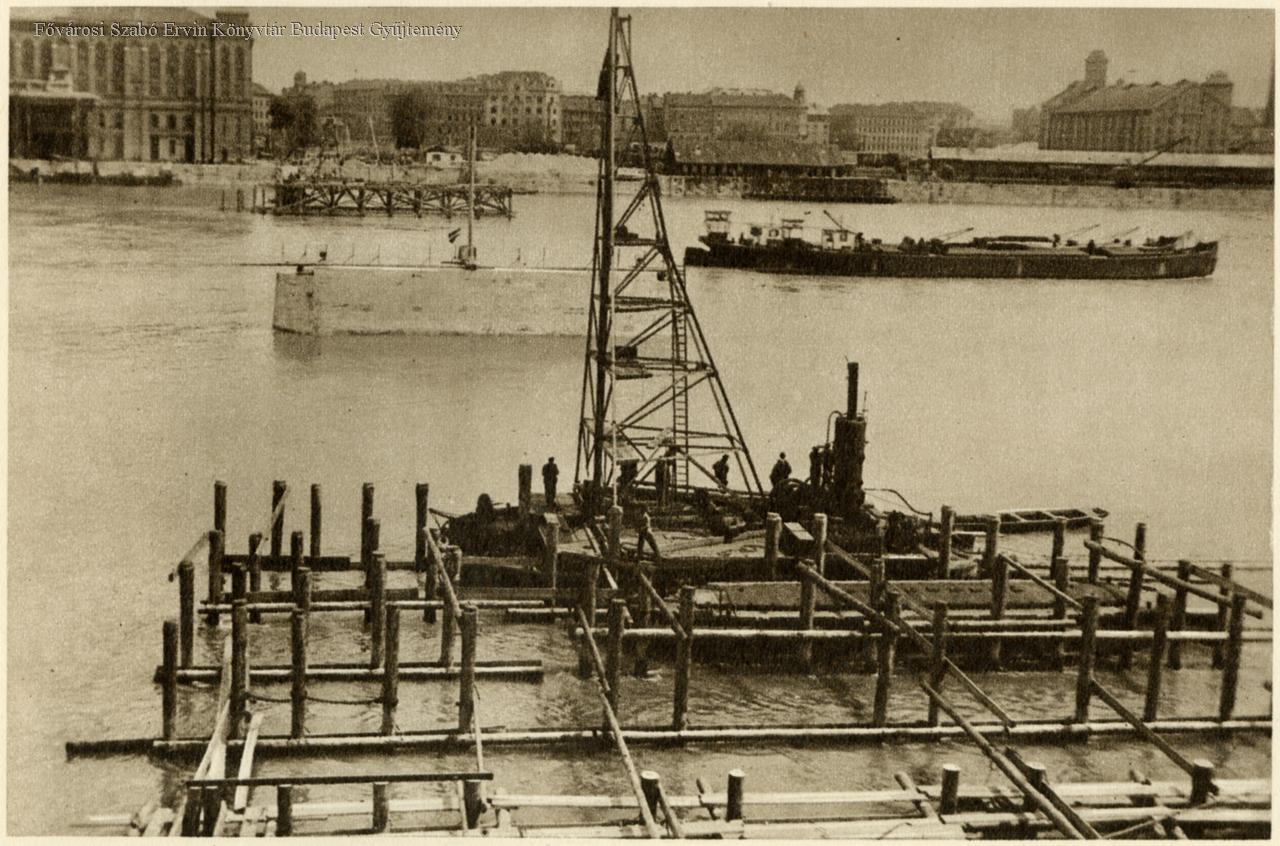 A vasszerkezet szerelőállványzatának cölöpözése, 1935. április 16.