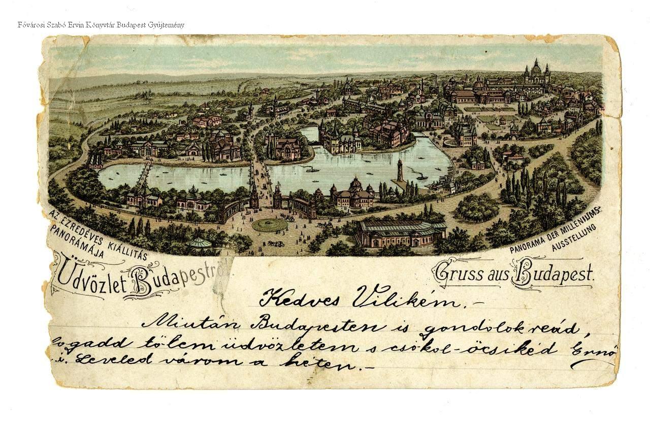 Üdvözlet Budapestről Az ezredéves kiállítás panorámája = Gruss aus Budapest : Panorama der Millenniumsaustellung