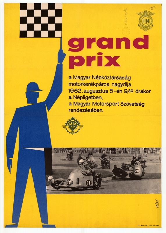 Magyar Motorsport Szövetség, MMSZ, színes plakát, grafikus plakát, Grand Prix, Nagydíj, motorsport, FIM, Fédération Internationale de Motocyclisme, Nemzetközi Motor Szövetség