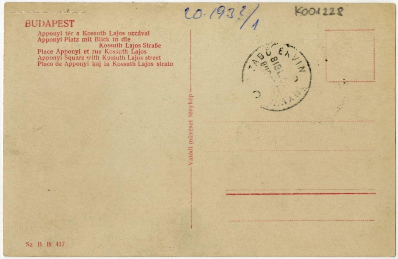 Budapest Apponyi-tér a Kossuth Lajos uccával : Apponyi-Platz mit Blick in die Kossuth Lajos Strasse : Place Apponyi et rue Kossuth Lajos : Apponyi Square with Kossuth Lajos street : Placo de Apponyi kaj la Kossuth Lajos strato