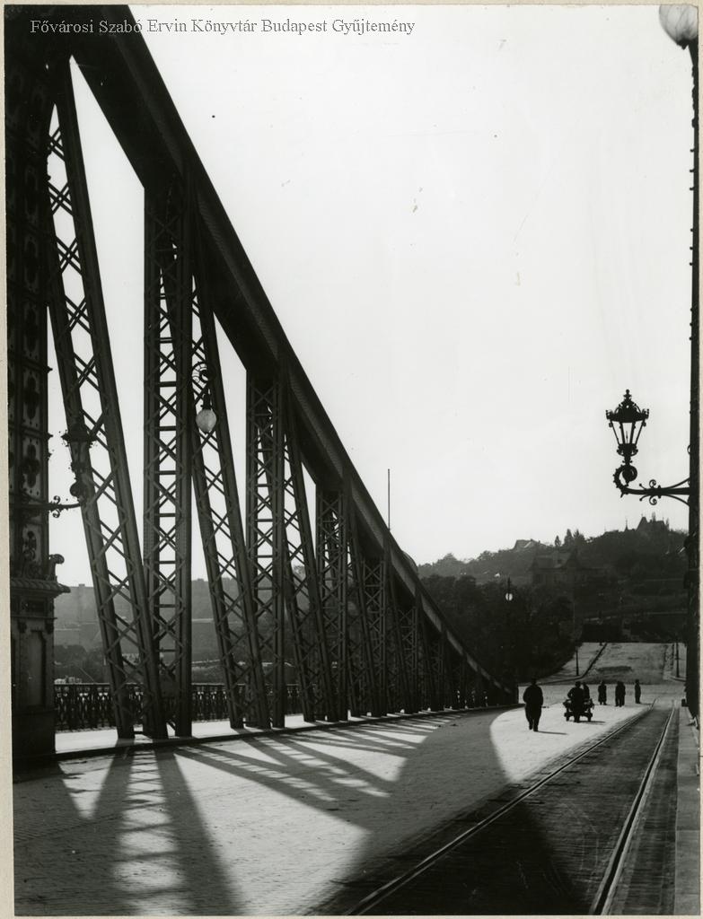 közúti híd, gyalogos közlekedés, vasúti sín, lámpa, 1898