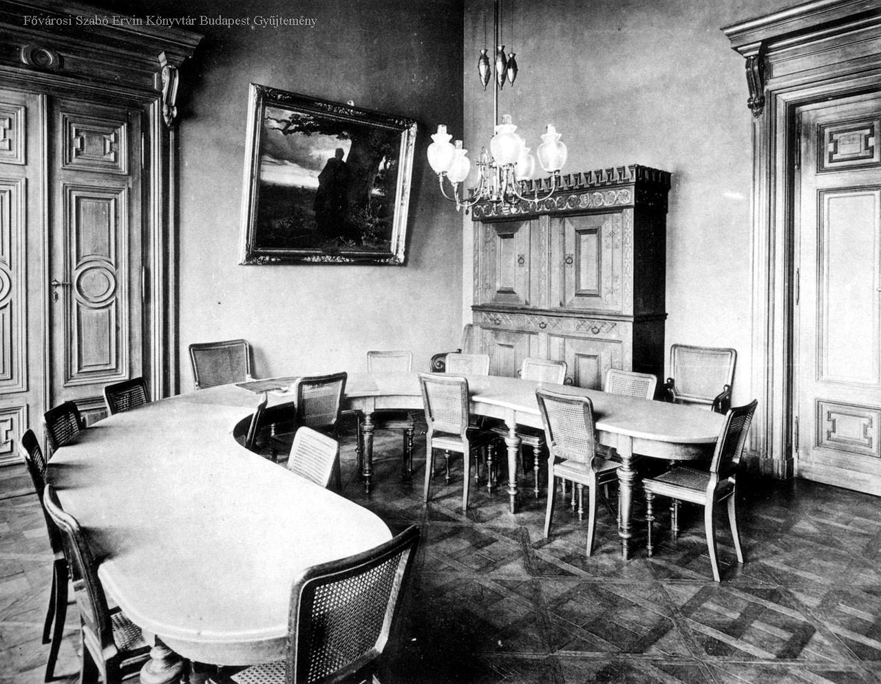 tudományos intézmény, neoreneszánsz, bútor, festmény, csillár, enteriőr, 1890-es évek