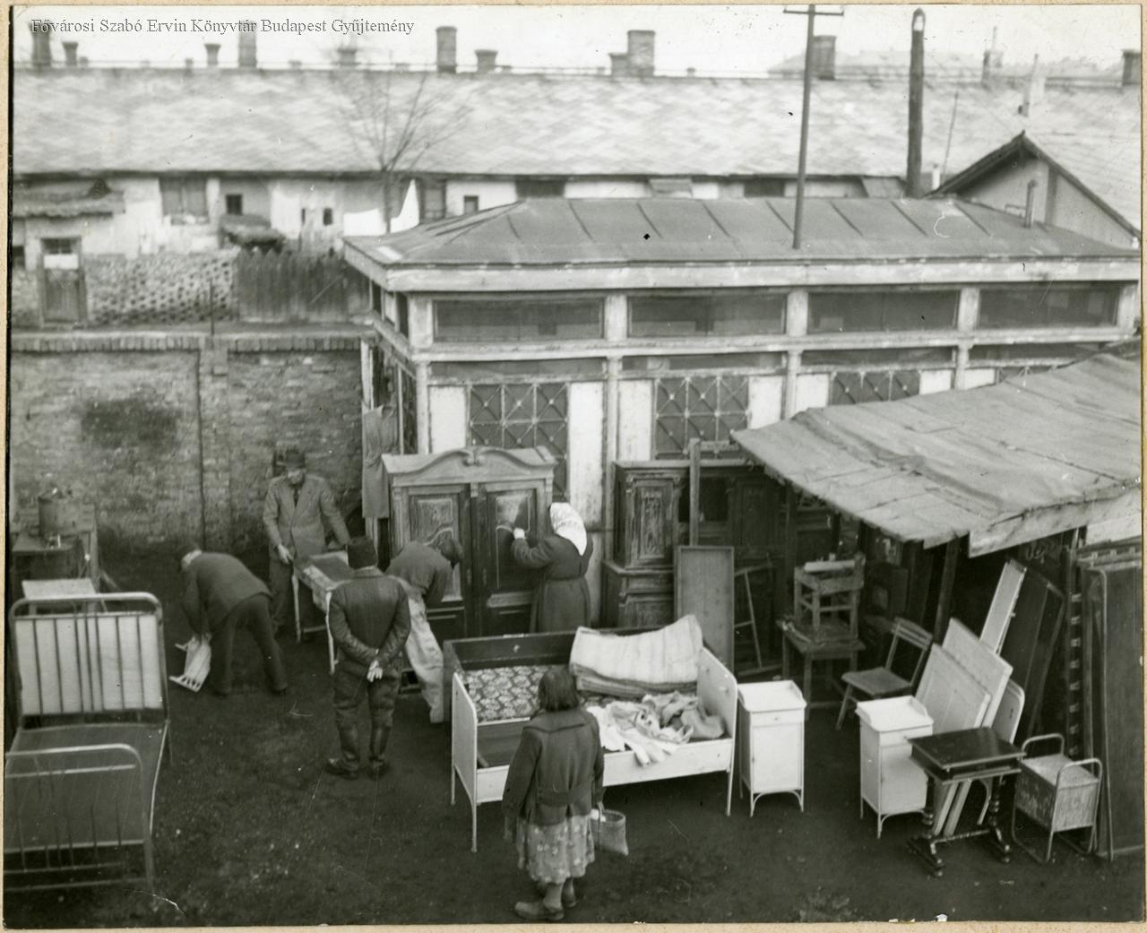 árusítás, használt cikk, piac, vásár, , férfi, bútor, szegénység, külső felvétel, 1950-es évek