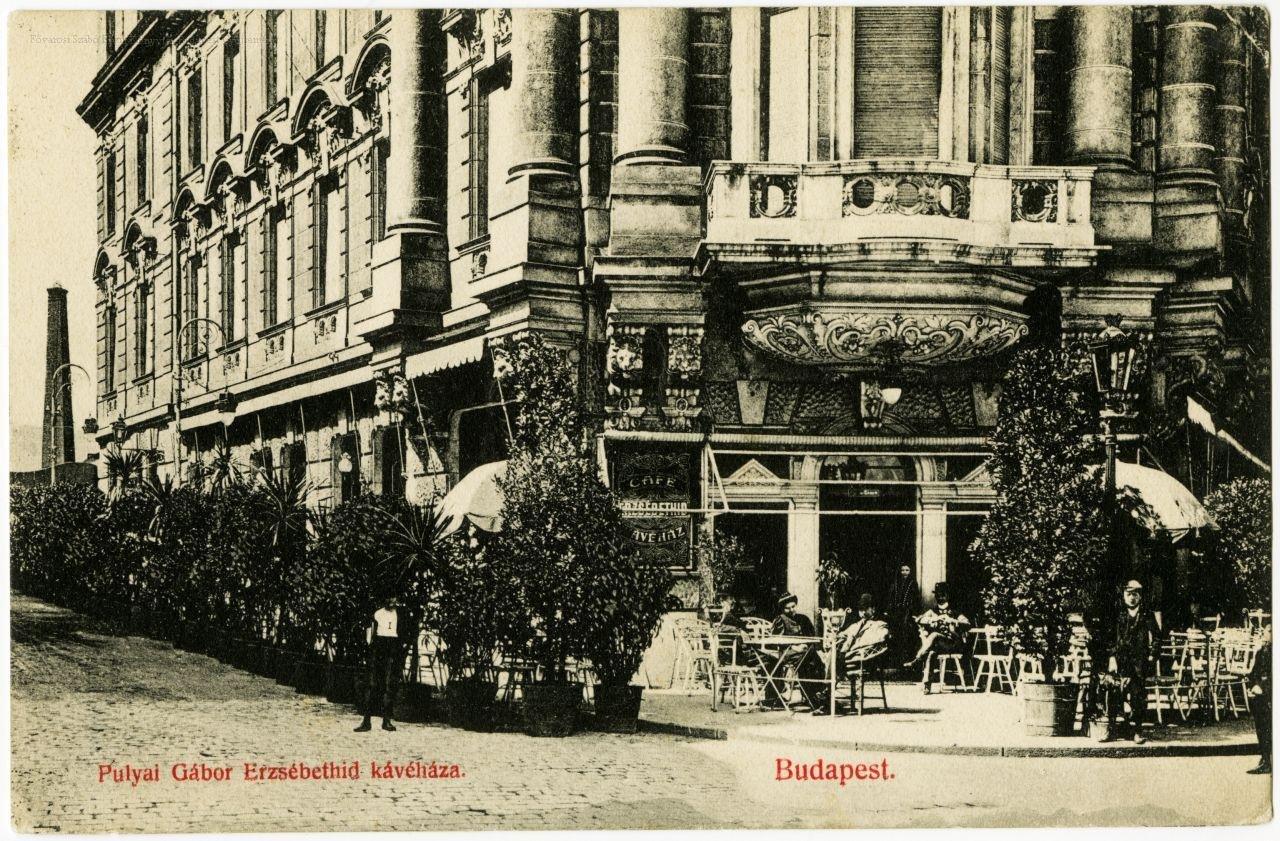 Az Erzsébet-híd kávéház 1904-ben nyílt meg, 1909-1916 közt tulajdonosa Pulyai Gábor volt