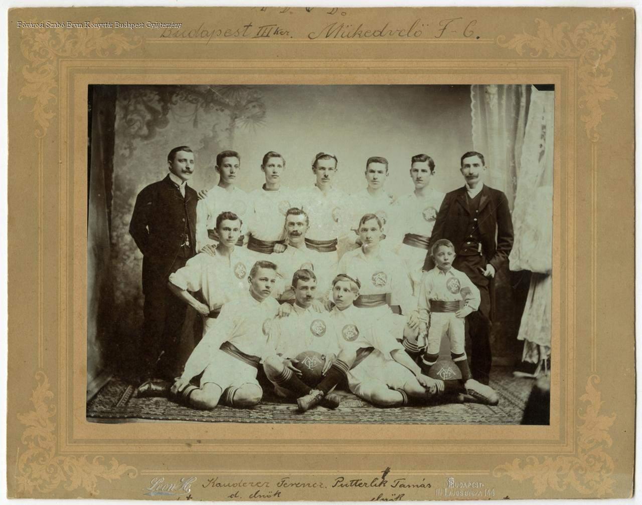 Kézzel írt felirat a kartonon: "Budapest III. ker. Műkedvelő F-C. Kanderez Ferencz al.elnök Putterlik Tamás elnök"
