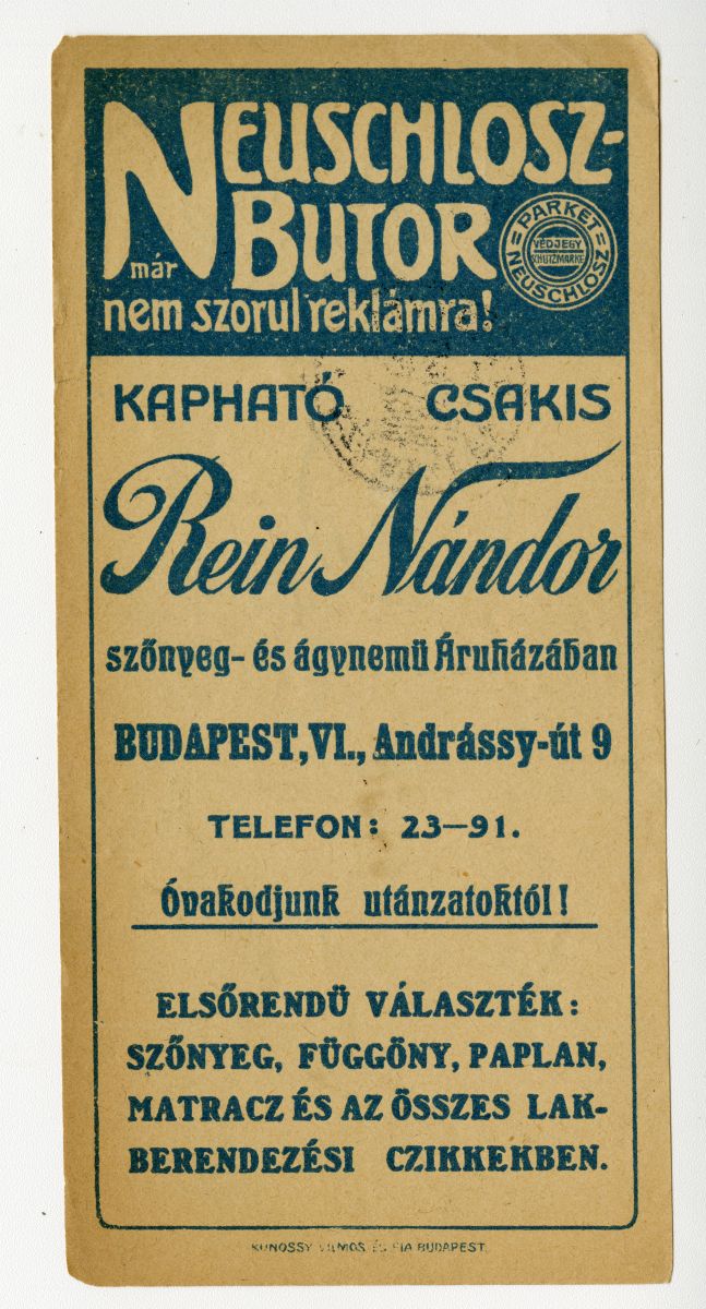 Cégnév:Rein Nándor Szőnyeg és Ágynemű Áruháza