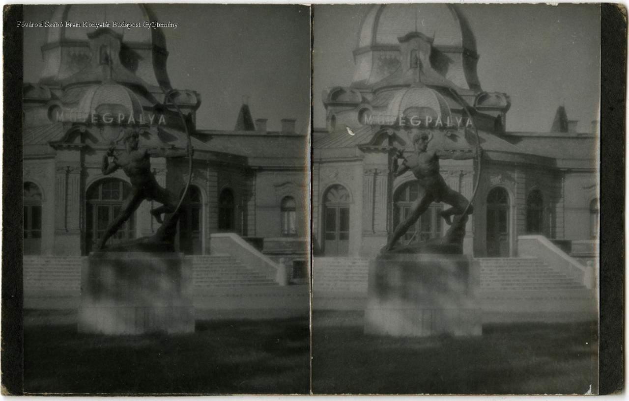 [Kisfaludy Stróbl Zsigmond Íjász-szobra a városligeti korcsolyacsarnok előtt]