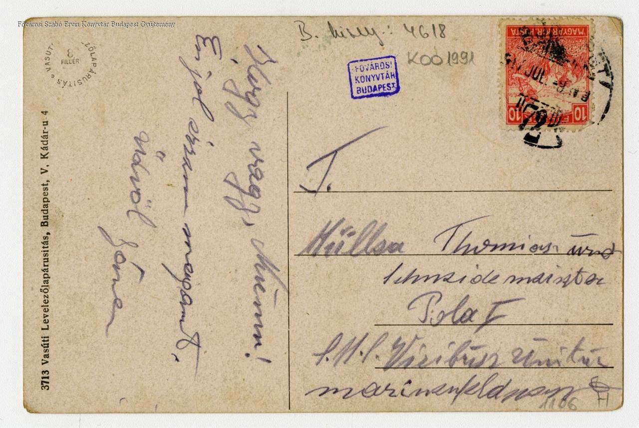 A kiadó címe a lap hátoldalán: Budapest V. kerület Kádár utca 4.