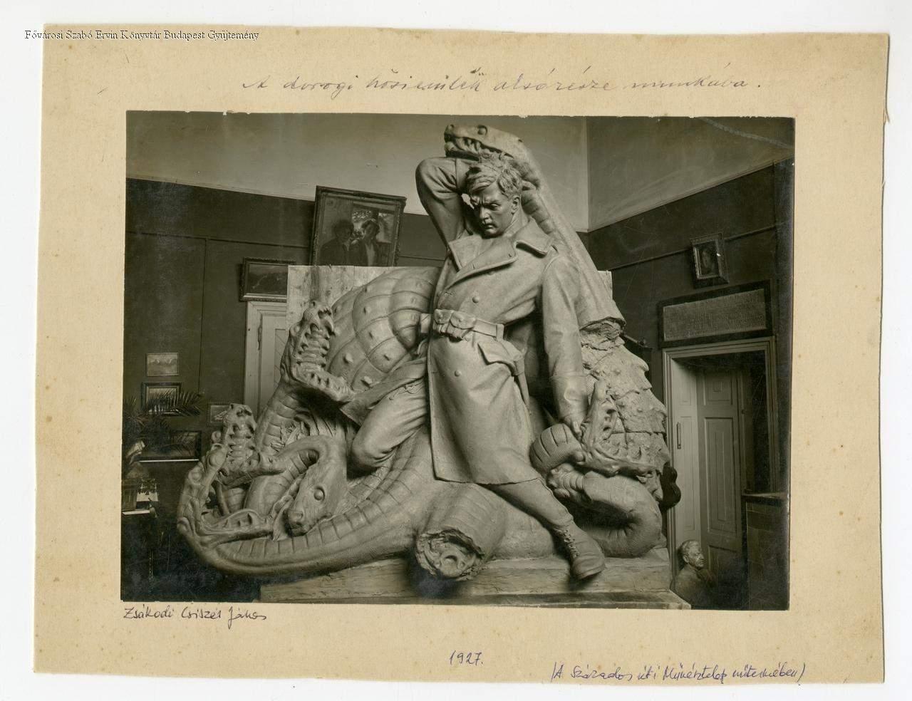 szobor, emlékmű, első világháború, katona, modelltárgy, műterem, tárgyfotó, belső felvétel, 1927