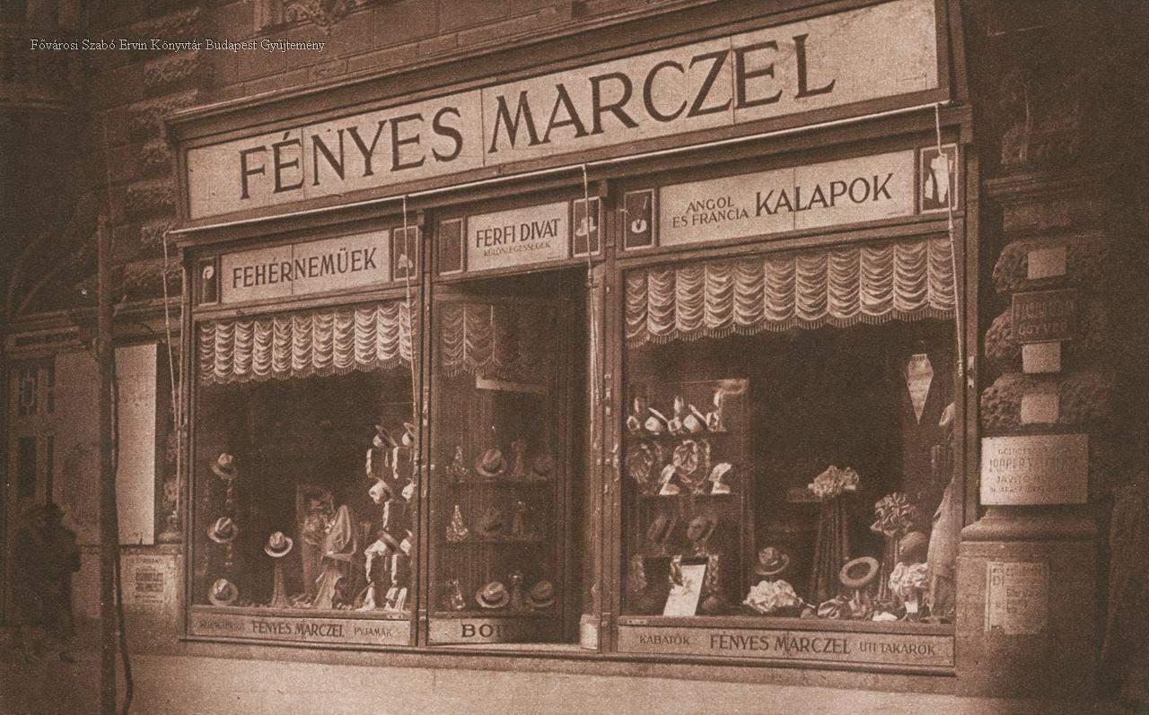 Fényes Marcel cég úridivat-különlegességek üzletének és úriszabó-műtermének ízléses kirakata