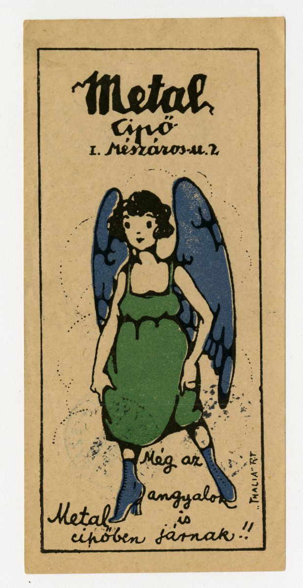 női cipő, lábbeli, cipész, angyal, üzlet, reklámnyomtatvány, kisnyomtatvány, aprónyomtatvány, számolócédula