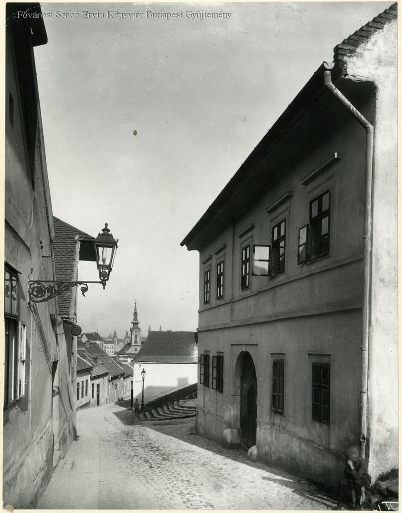 lakóépület, lámpa, templom, utcakép, 1900-as évek