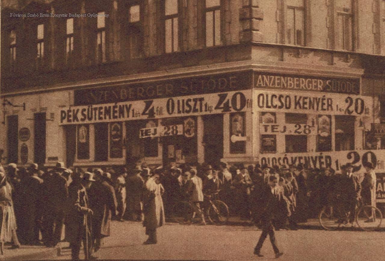 Anzenberger sütödéje előtt tolong a tömeg olcsó kenyérért