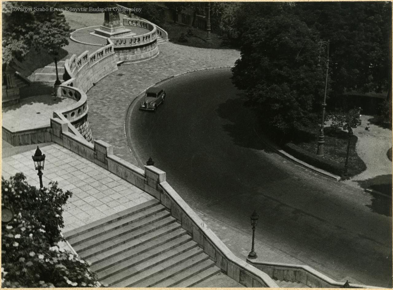 lépcső, utcakép, korlát, sétány, személygépkocsi, 1940 körül