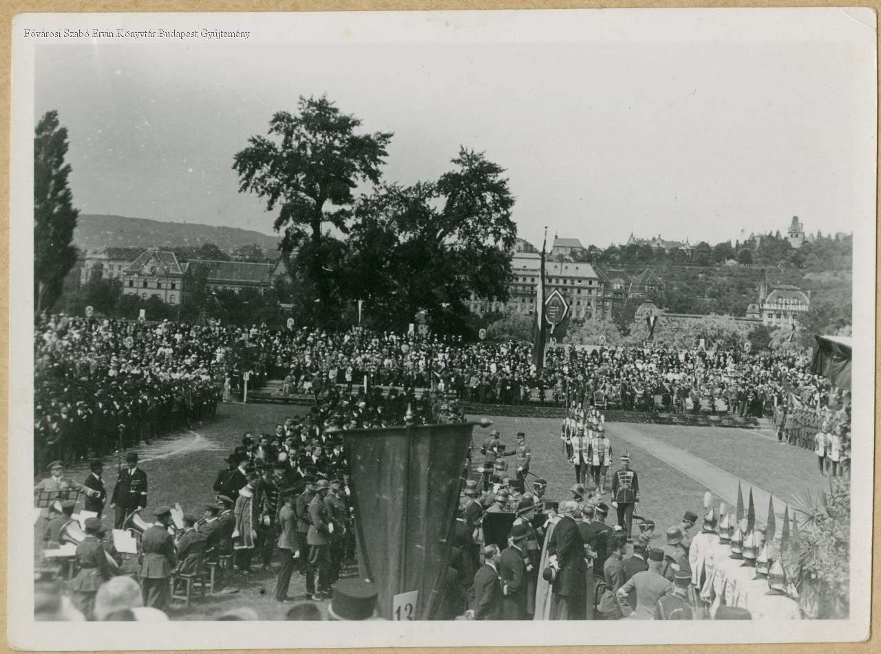 fogadalomtétel, felvonulás, ünnepség, katona, néptömeg, egyenruha, zászló, katonazenekar, vitézi rend, Horthy-korszak, 1936