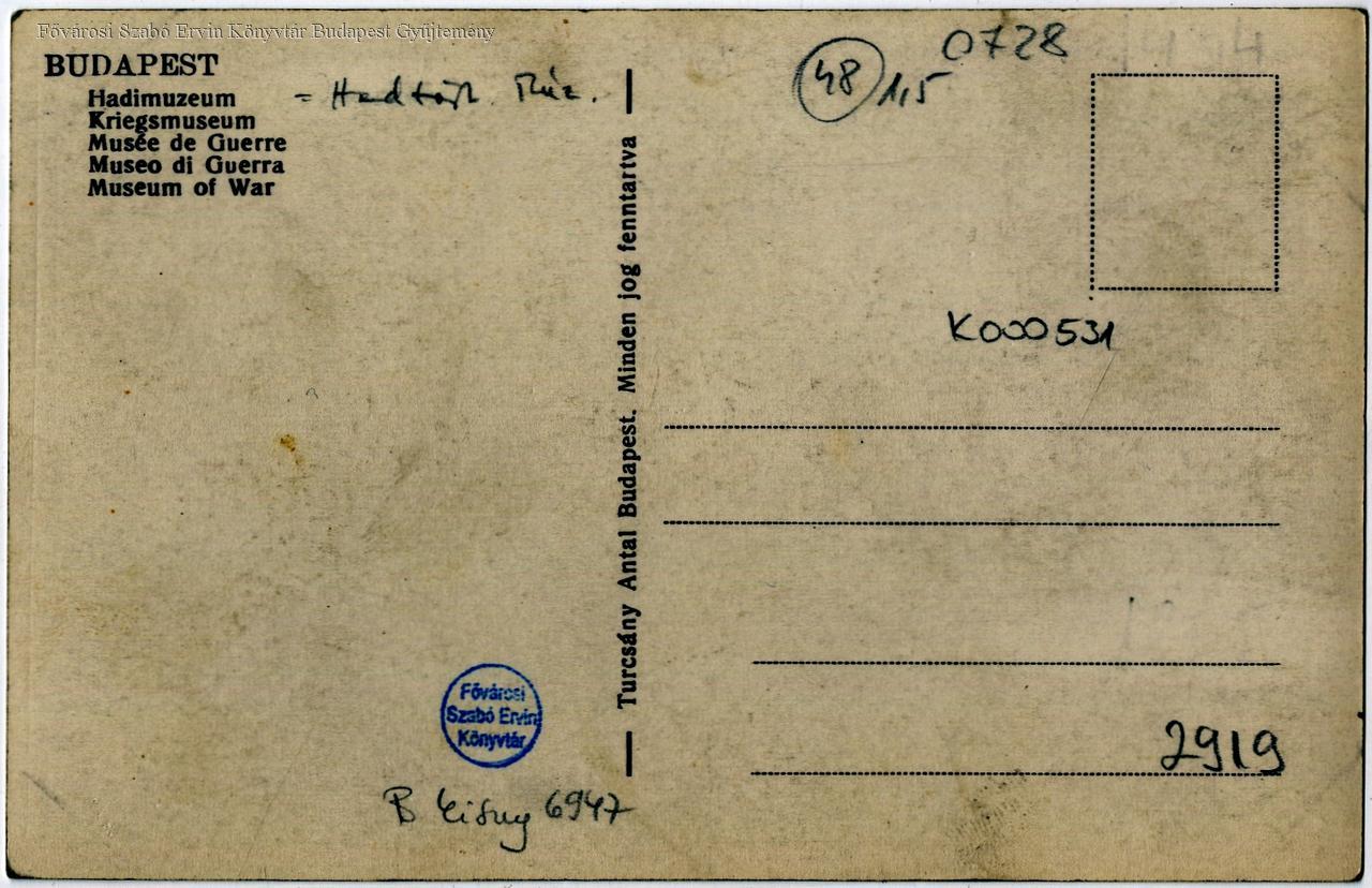 Budapest Hadimúzeum = Kriegsmuseum = Musée de Guerre = Museo di Guerra = Museum of war