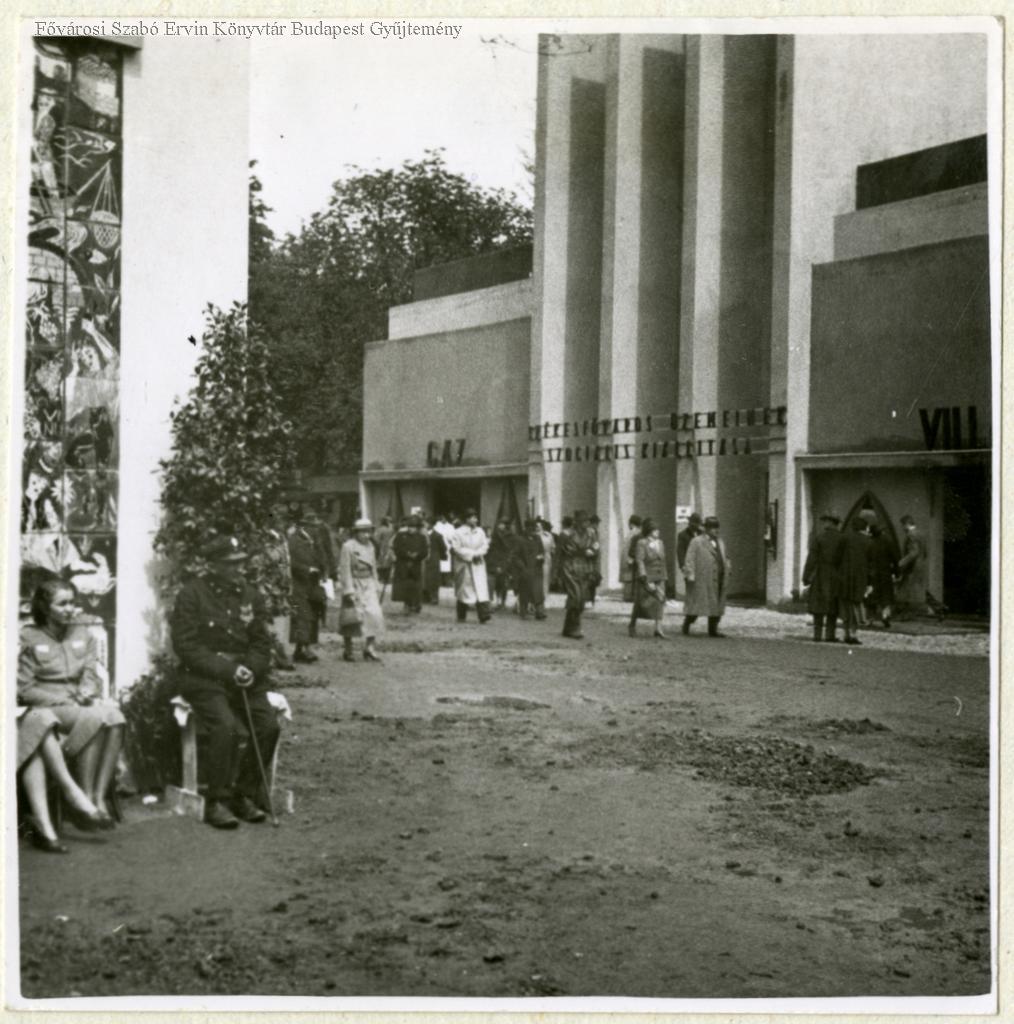 [Nemzetközi vásár a Városligetben, nézelődők a székesfőváros közüzemeinek pavilonja előtt, 1938]