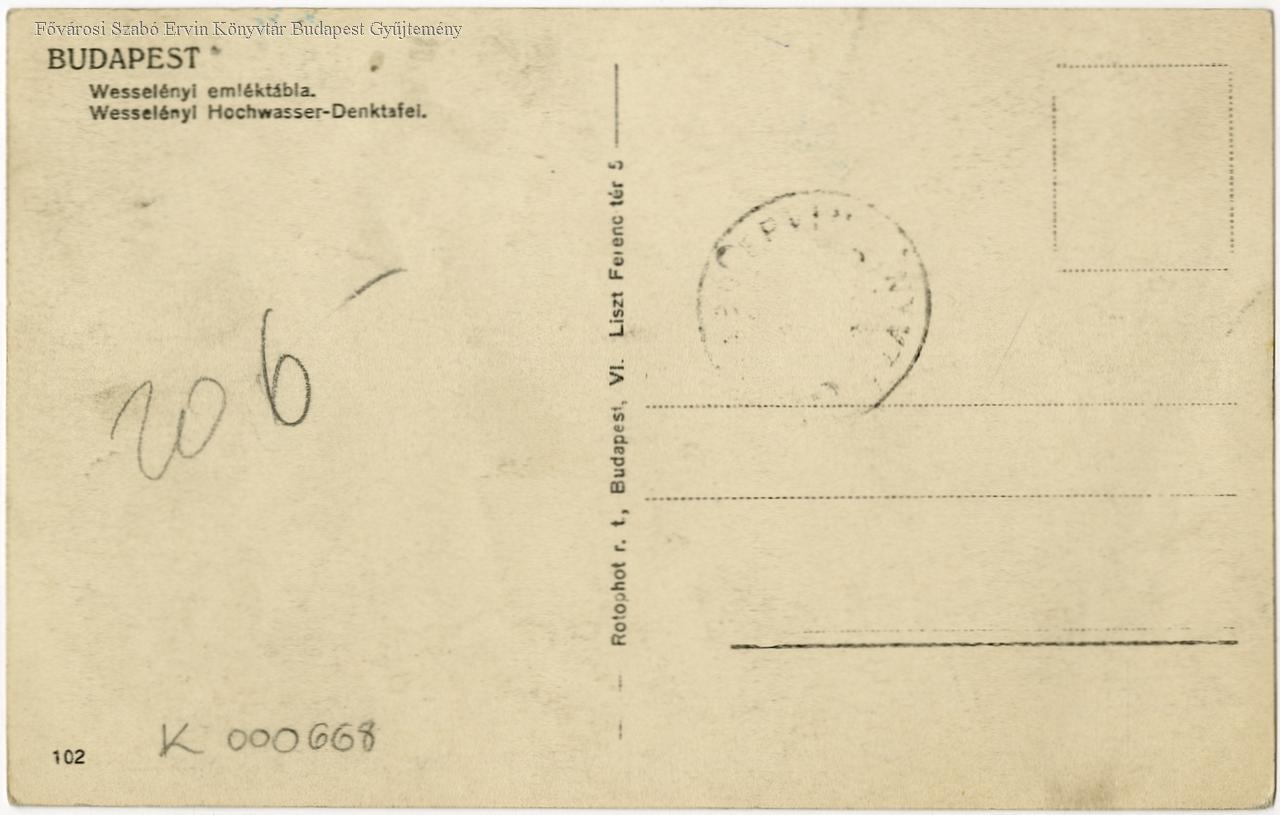 Budapest Wesselényi emléktábla = Wesselényi Hochwasser-Denktafel