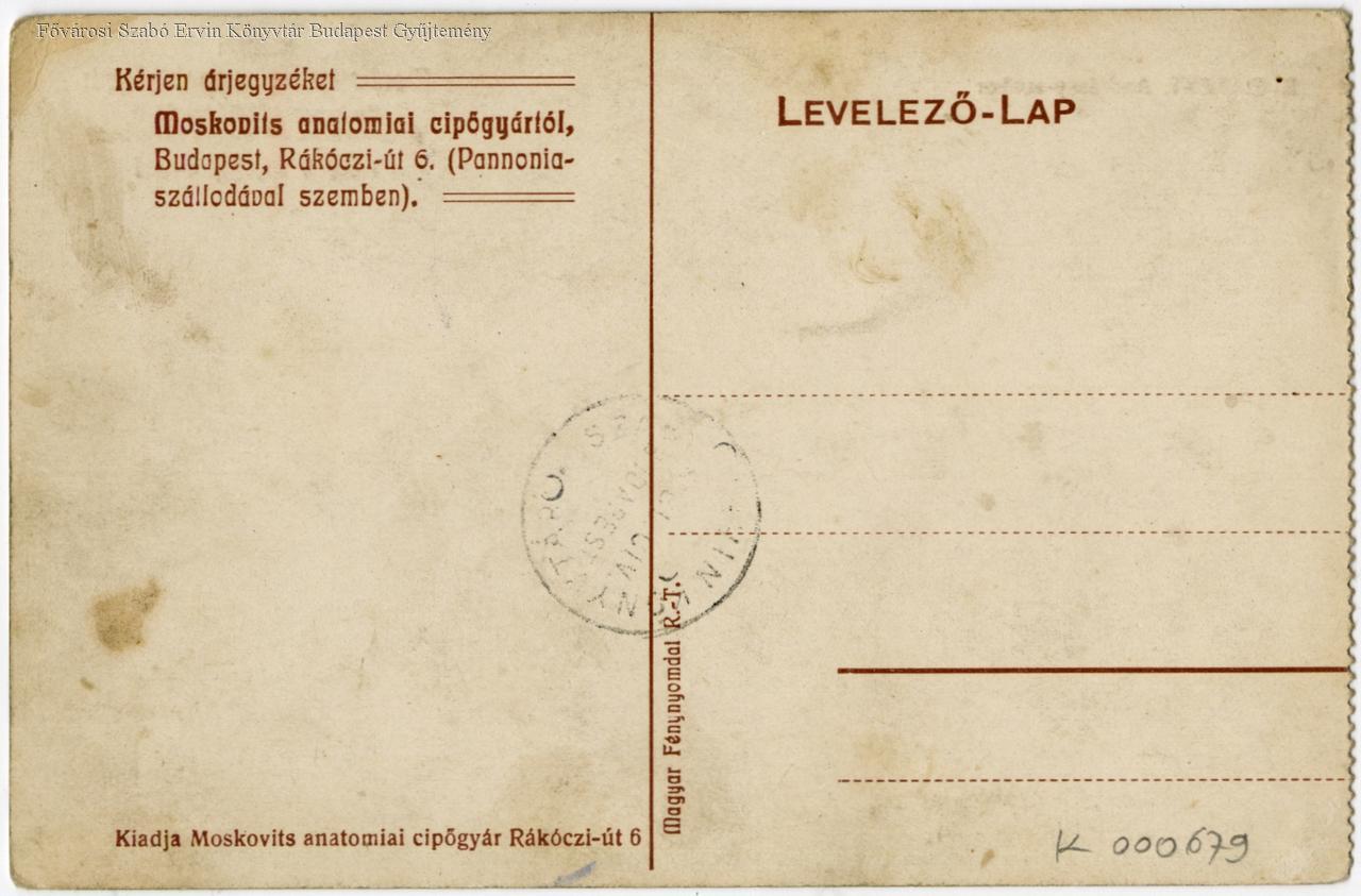 Budapest Andrássy-szobor : Kiadja: Moskovits anatomiai [!] cipőgyár Budapest Rákóczi út 6. (Pannónia-szállodával szemben) Kérjen árjegyzéket!