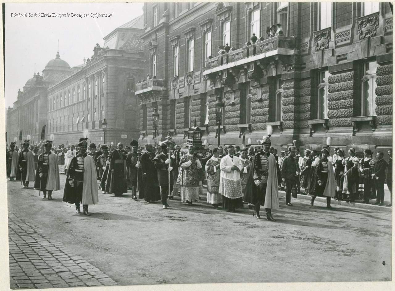 körmenet, katolikus pap, főpap, ereklye, keresztény ünnep, nemzeti ünnep, augusztus 20., koronaőr, Horthy-korszak, 1941