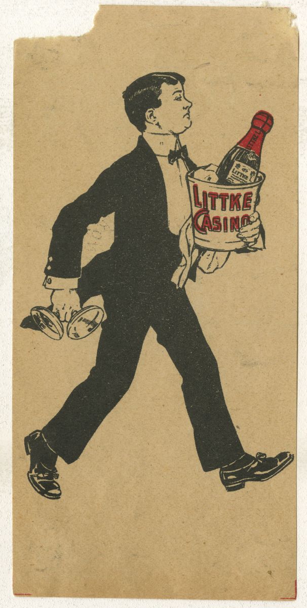 alkohol, alkoholfogyasztás, pezsgő, pezsgősüveg, pezsgőspohár, jég, hűtés, luxus, elegancia, szabadidő, fiatal, nő, férfi, szépség, estélyi ruha, ékszer, gazdagság, jólét, szórakozás, kikapcsolódás, koccintás, pincér, reklámnyomtatvány, kisnyomtatvány, aprónyomtatvány, számolócédula