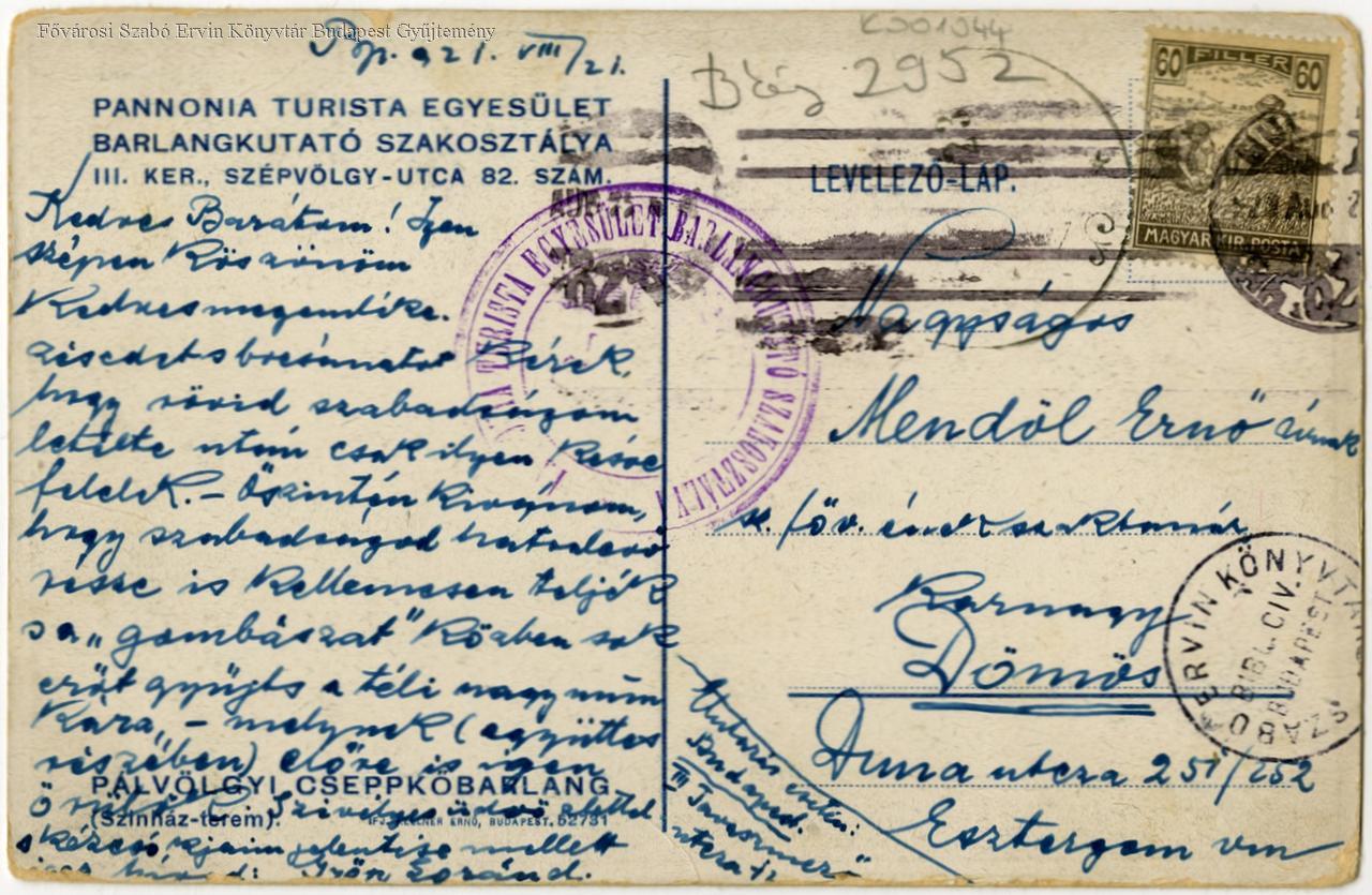 képes levelezőlap, belső felvétel, cseppkőbarlang, turizmus, barlangászat, ember, lépcső, 1921