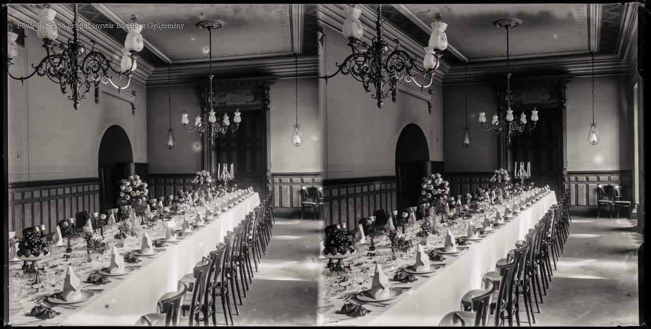[Esküvői terített asztal a Pannónia Szállóban] [Wedding table setting at Hotel Pannónia]