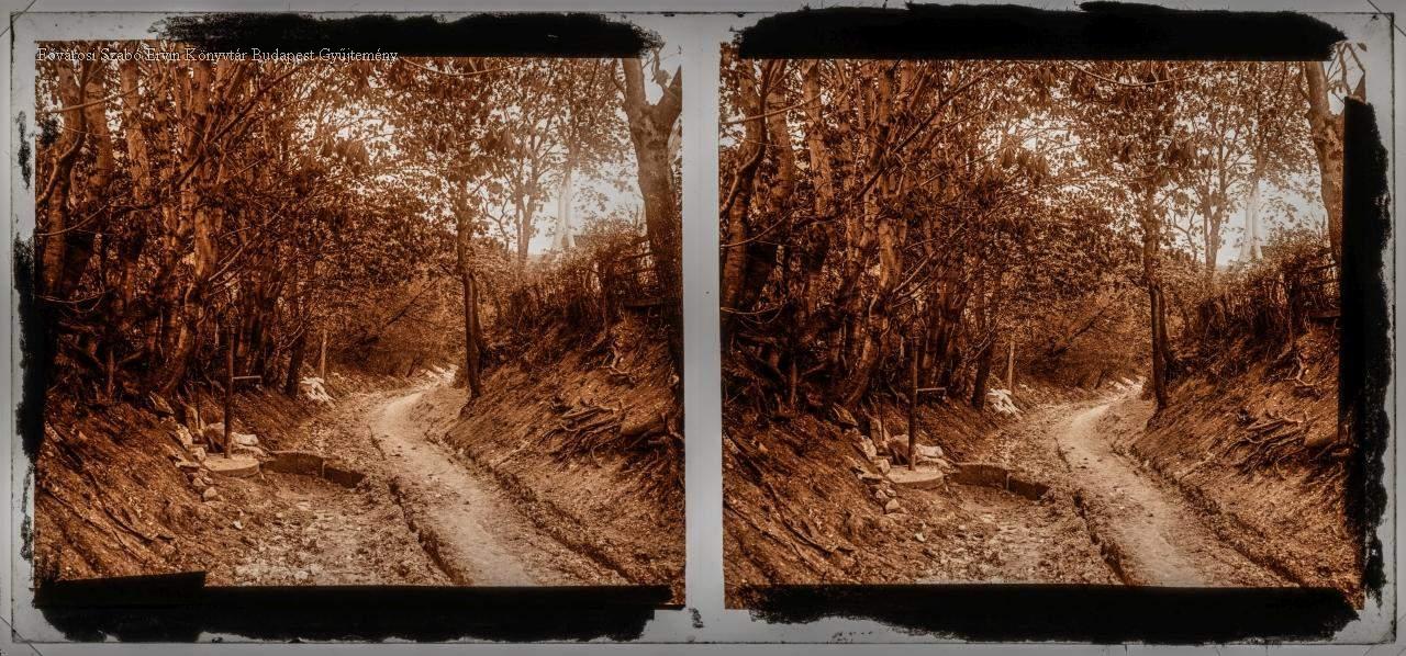 [Erdőrészlet, út menti kúttal] [Woodland with roadside well]