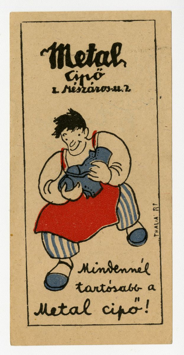 cipő, cipész, férfi, inas, suszter, üzlet, reklámnyomtatvány, kisnyomtatvány, aprónyomtatvány, számolócédula