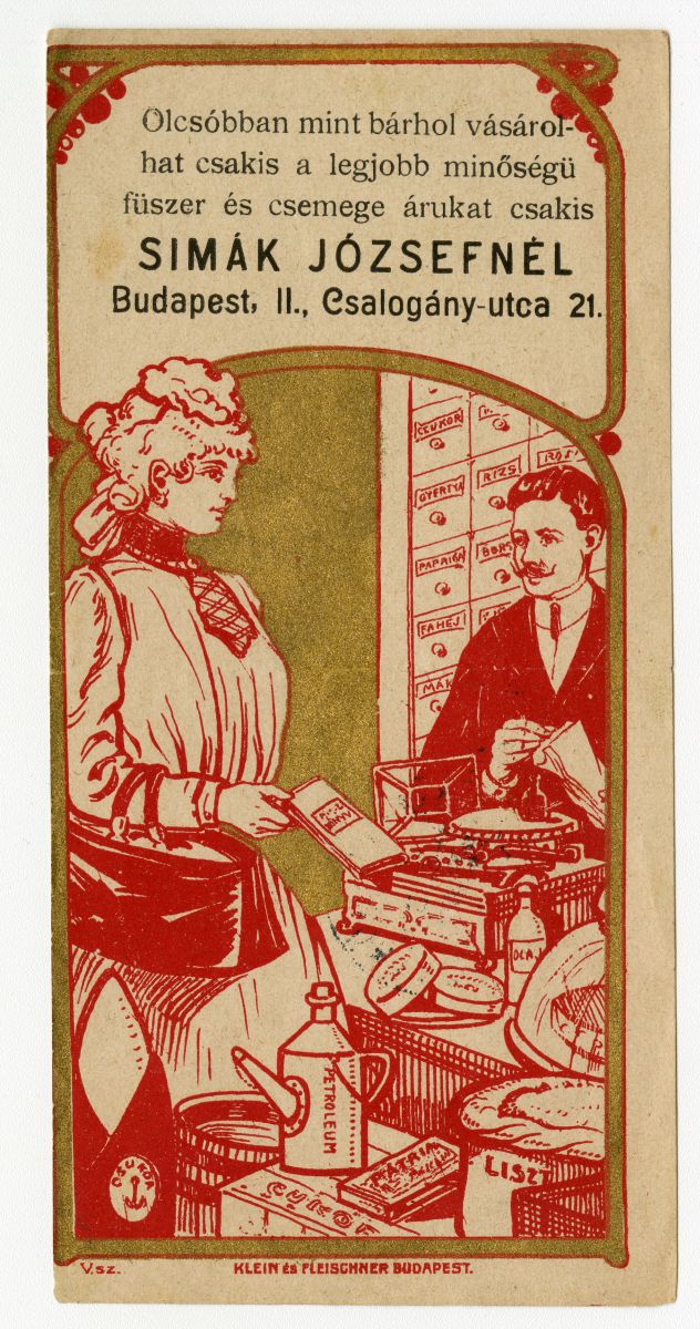 nő, férfi, vevő, eladó, táska, mérleg, petróleum, liszt, cukor, bors, fahéj, gyertya, rizs, paprika, mák, fűszer, édesítőszer, kanna, hordó, vegyesbolt, vegyeskereskedés, üzlet, kiskereskedő, bolt, kereskedés, háztartási cikk, reklámnyomtatvány, kisnyomtatvány, aprónyomtatvány, számolócédula