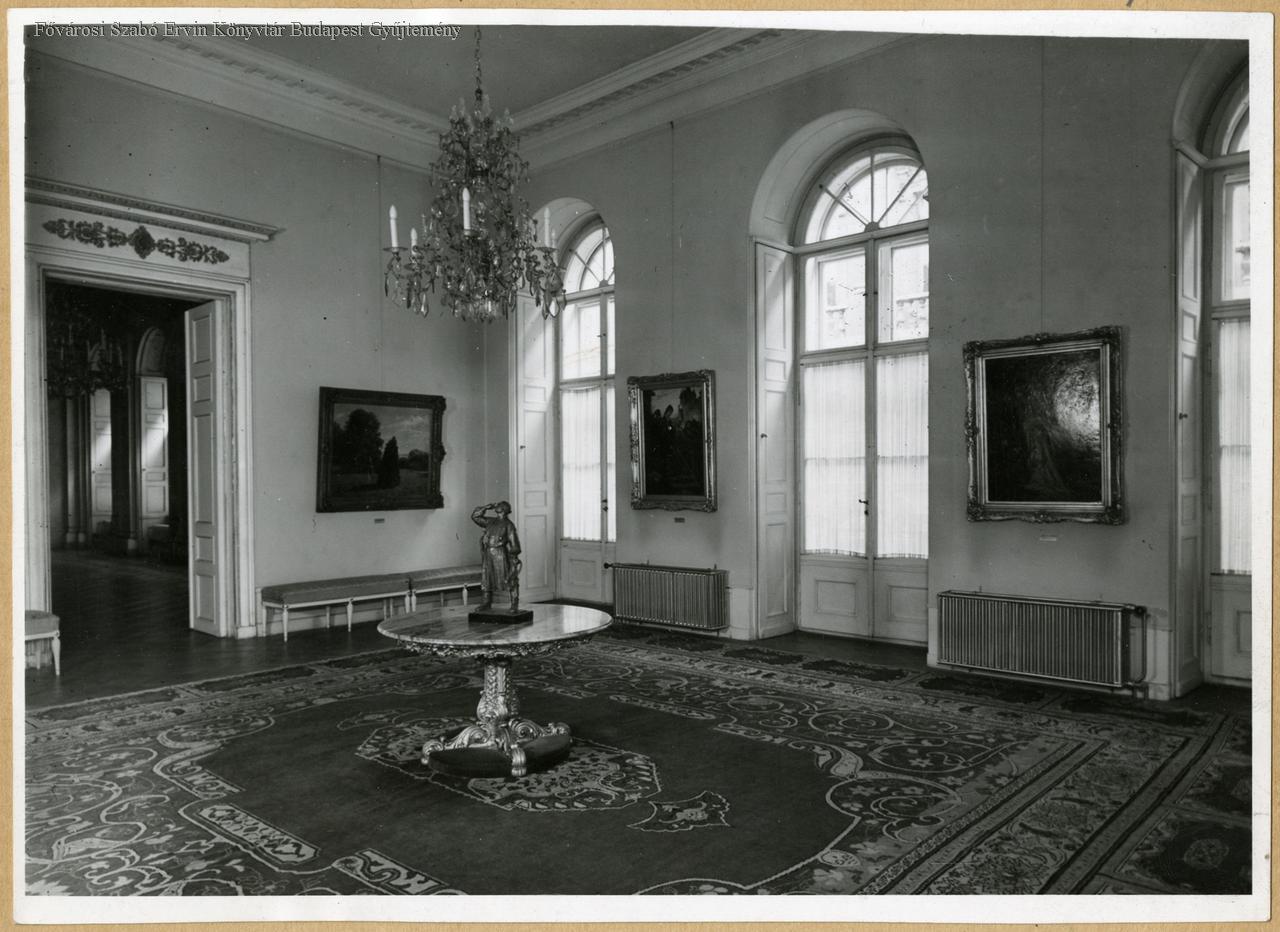 múzeum, képtár, csillár, asztal, szobor, festmény, belső felvétel, 1940 körül