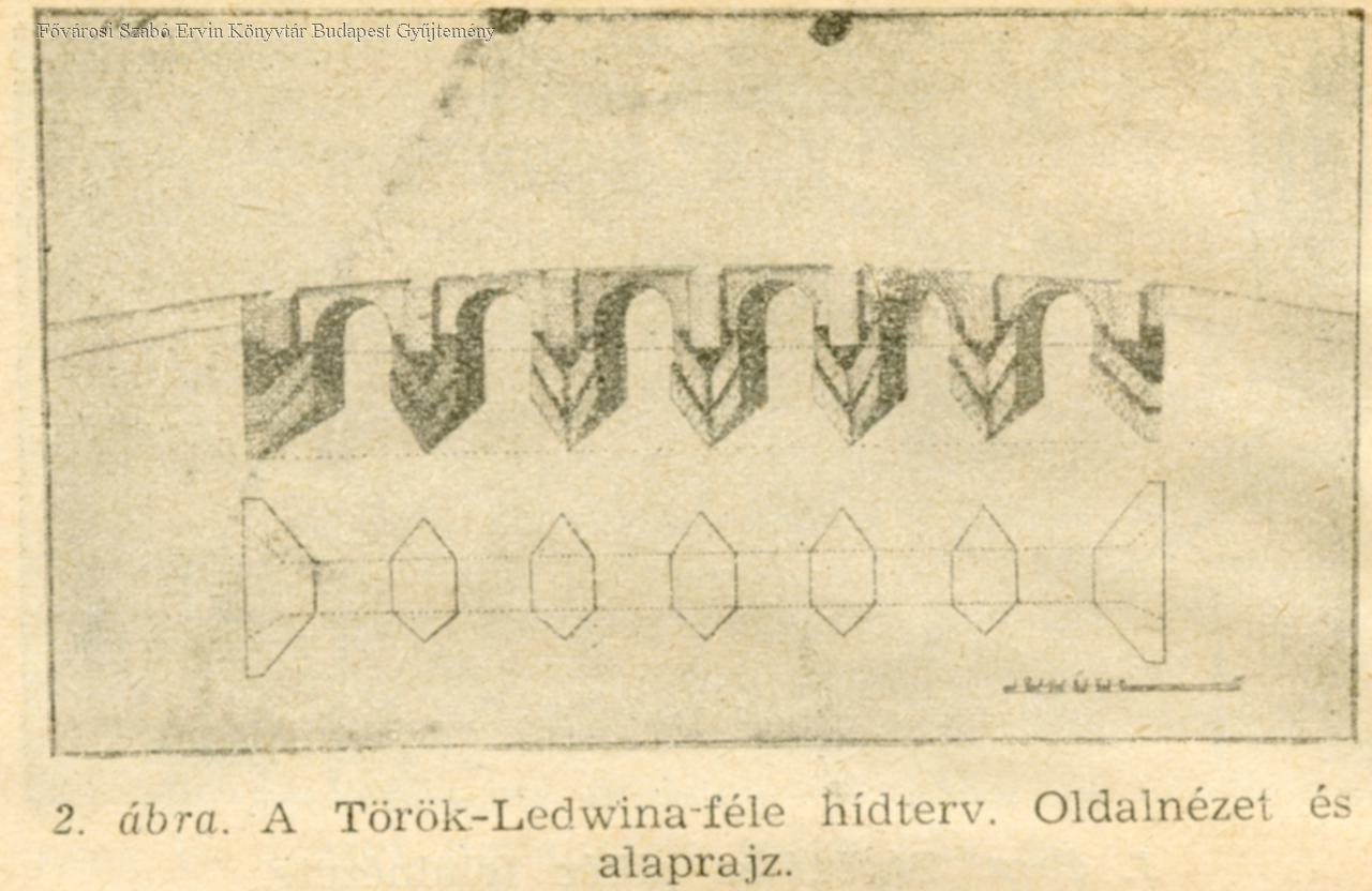 A Török-Ledwina-féle hídterv oldalnézet és alaprajz