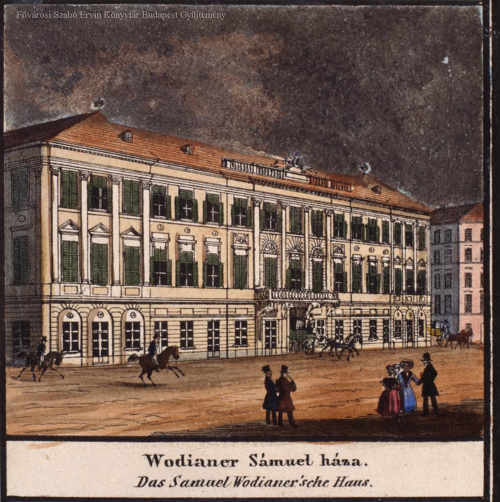 Wodianer Sámuel (1786-1850), Ábrázolás: kétemeletes, copfstilusú sarokház. Az egykori Két török-ház
