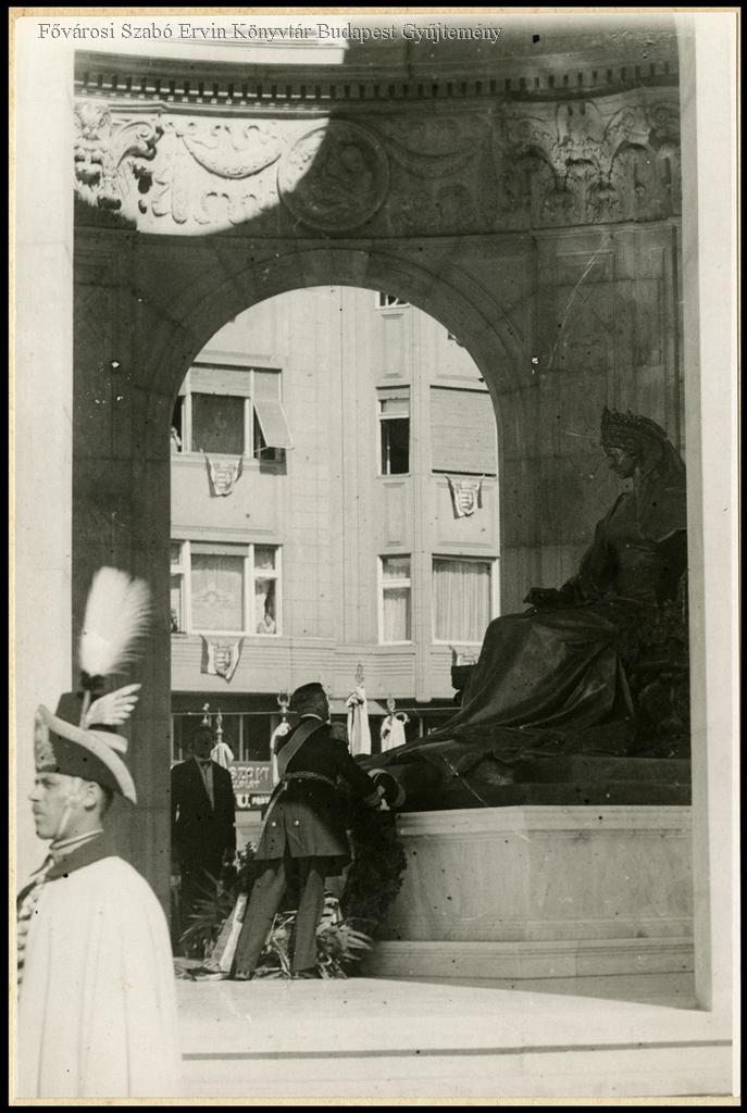 [Erzsébet királyné emlékmű leleplezési ünnepsége, 1932. szeptember 25.] [Horthy Miklós kormányzó tiszteletadása]